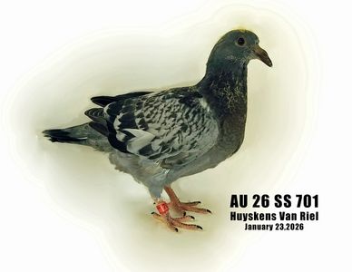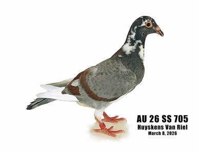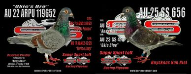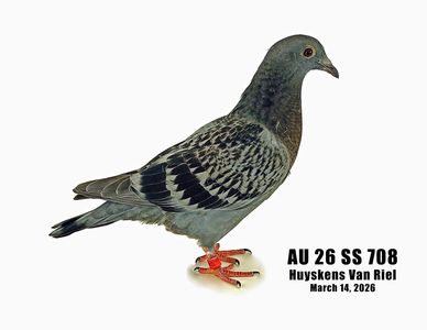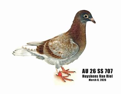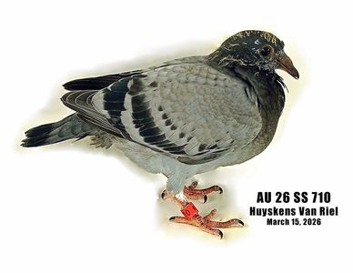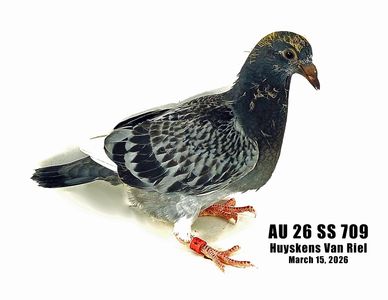 Sire is 50% Coletta HVR and 50% Syndicate Loft HVR. Dam is 100% Jones Boys HVR. This bird has several AU Champions in it's pedigree.